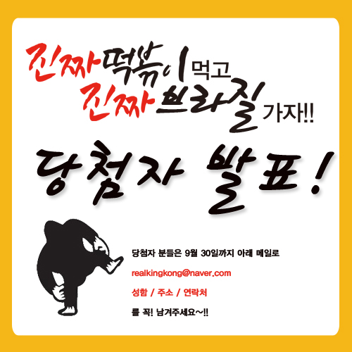 킹콩떡볶이 월드컵이벤트 당첨자 발표합니다!!!