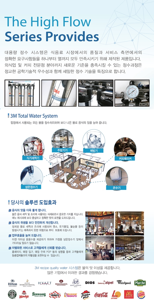 3M의 최첨단 기술력으로 더욱 뛰어난 정수능력을 통하여 고객님들께 건강한 레시피를 선보이고